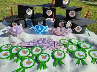 Ecuson / "brosa" pentru ultuma zi de scoala / absolvire, dar se poate adapta pentru orice ocazie. Ecusonul se poate realiza cu orice alta tema / imagine si orice combinatie de culori. In spate este prevazuta cu ac pentru prindere. Se pot personaliza contracost si cu numele scolii, a cadrului didactic sau al elevilor